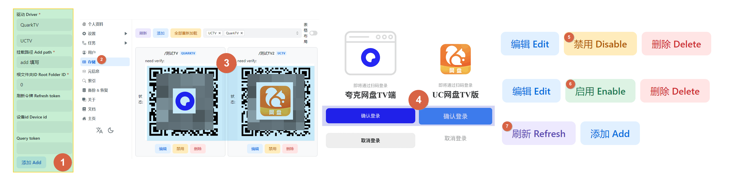 QuarkTVdriver, fill in the mounting path, and then saveReturn to the all driver page and use the mobile APP to scan the QR code (If the QR code is not displayed, click on